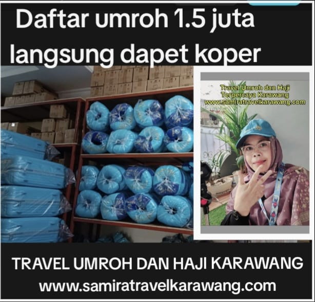 Menunaikan ibadah umrah kini tidak perlu menunggu lama atau menabung bertahun-tahun. Bersama travel umrah dan haji Karawang, yakni Samira Travel, Anda bisa berangkat umrah dengan cara yang lebih mudah, aman, dan terjangkau. Cukup DP 1.5 juta, jamaah sudah langsung mendapatkan koper eksklusif yang siap diantar sampai depan pintu rumah. Selain itu, masih ada hadiah menarik berupa topi resmi Samira Travel sebagai simbol keberangkatan penuh berkah dan kebersamaan.